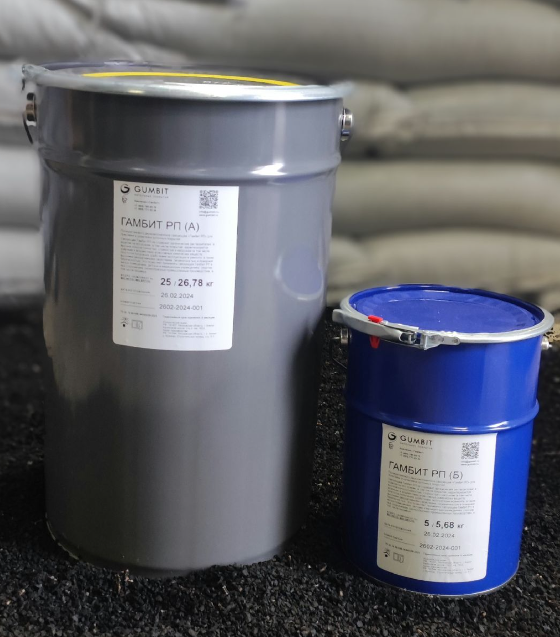 Двухкомпонентный полиуретан «Гамбит» отличается отличной адгезией с рулонными покрытиями, химической стойкостью. В отличие от 1-компонентного клея 2-компонентный состав клея для крошки включает в себя отвердитель и преполимер, которые следует перед использованием смешать. «Гамбит» обладает плюсами 1-компонентных составов, но при этом быстрее отверждается, меньше зависит от тепла, влаги в помещении или на улице.