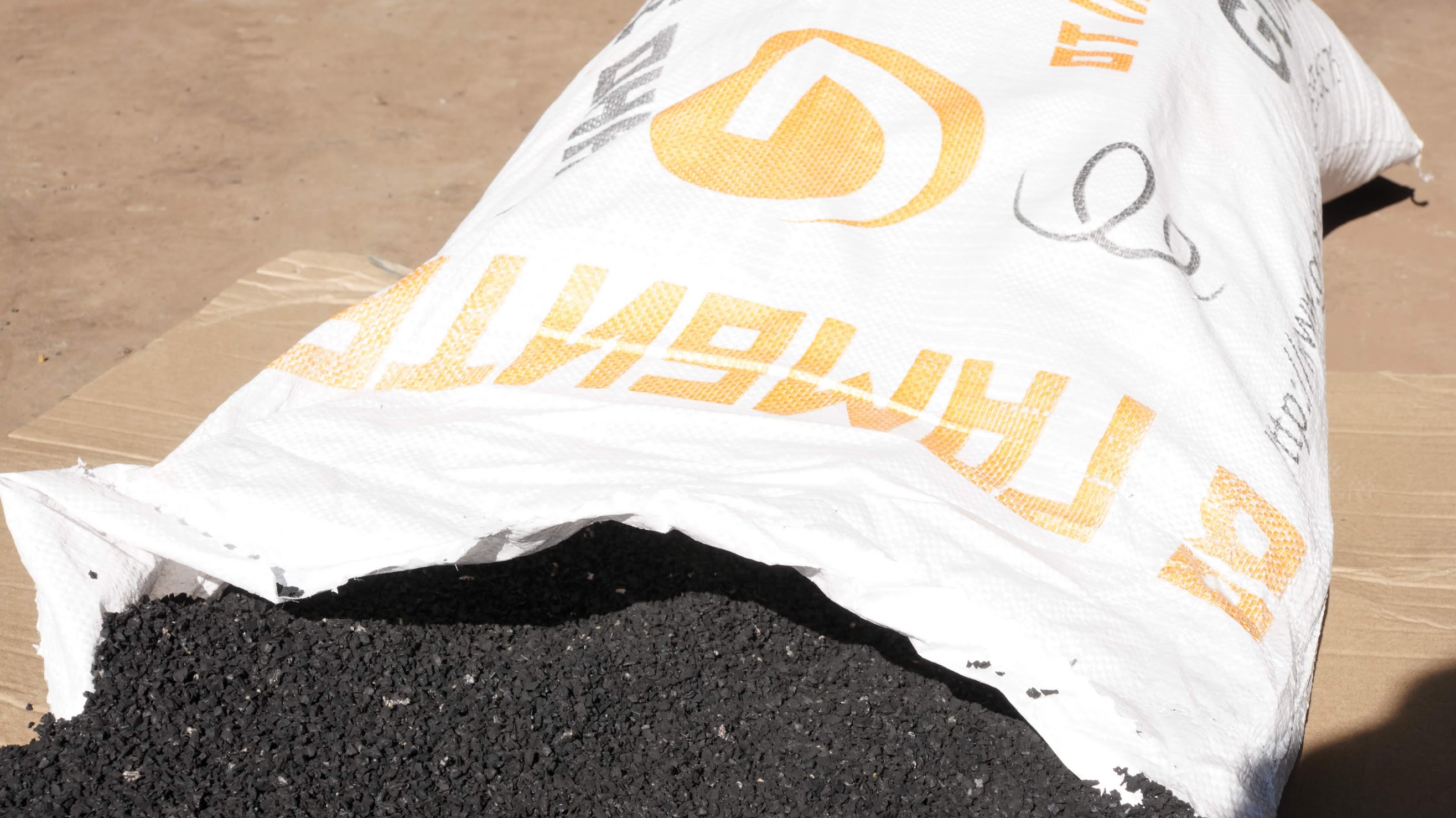 Резиновая крошка мелкой фракции предназначена для создания верхнего напыляемого слоя спортивных покрытий и для засыпки искусственного газона. Гранулят расфасован в биг беги. Масса резиновой крошки в одном мешке — 1000 кг.