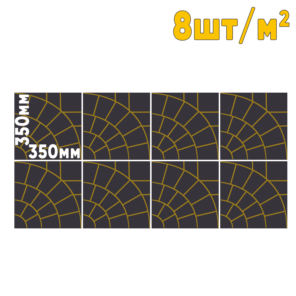 Резиновая плитка размером 350х350 мм с рельефным узором в виде «паутинки». Предназначена для укладки на твёрдое основание. Обладает не только визуальной привлекательностью, но и повышенными противоскользящими свойствами.
